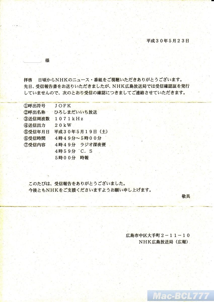 2018年5月31日(木)の受信ログです。
