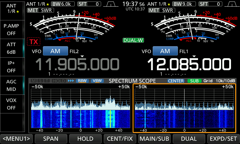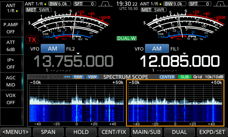 GPSデータが転送されましたので、IC-9700の画面上部にGPS衛星アイコンが表示されます。このアイコンが点灯していたら、正常にGPS情報が転送されています。