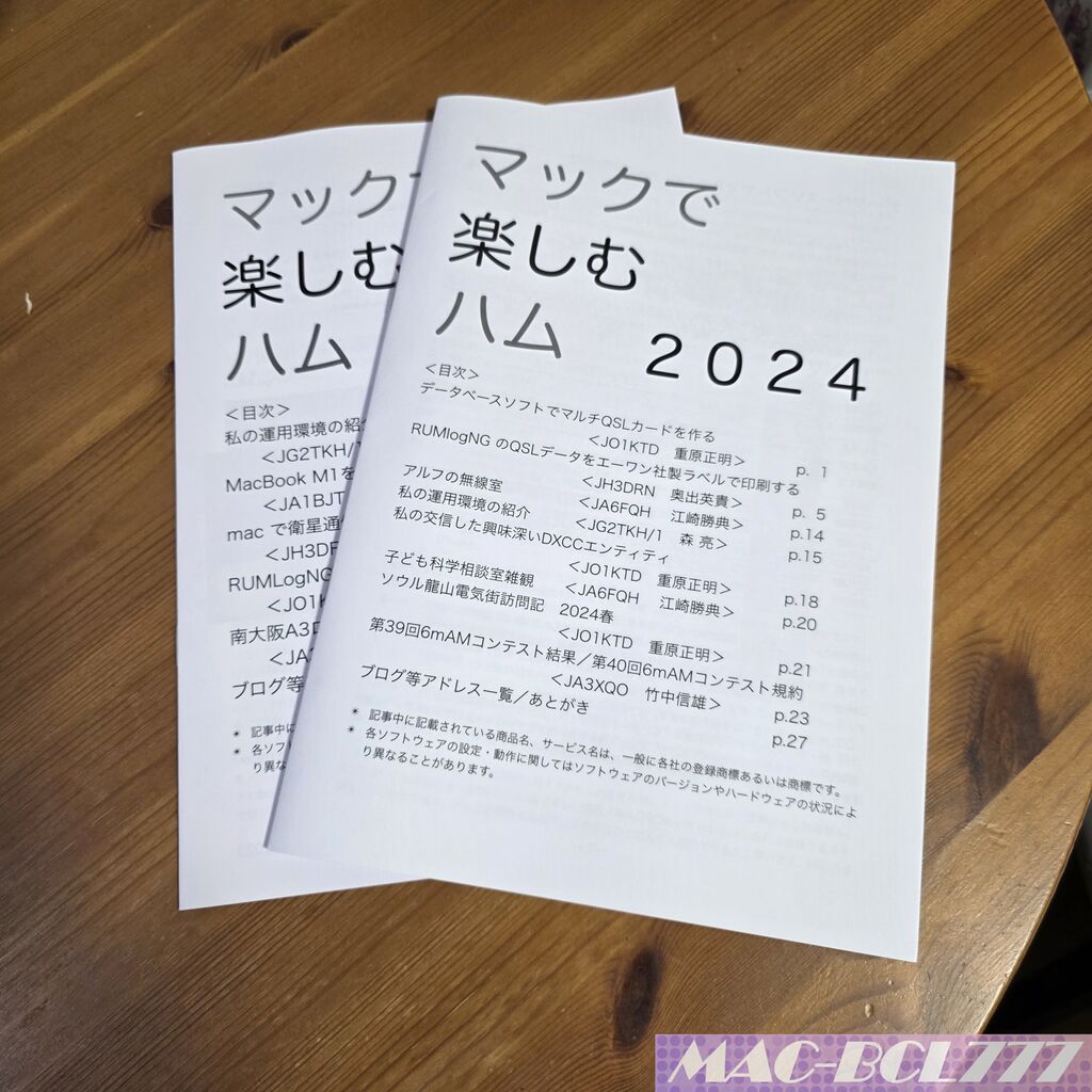 2025年04月12日 マックで楽しむハム こんにちは!Mac-BCL777です。 初めて同人誌を購入しました。Mac Userである私にとって、何か参考になる情報がないかということで購入しました。内容を見てみると、有意義な情報がありまして、購入して良かったかなと思っております。もともとIC-7610とJSJT-X、RUMlogNGeo使っていましたので、何か特別な使い方はありませんでしたが、参考にできる情報は多くありました。このような情報誌をご提供いただき、ありがたく思います。 「アマチュア無線」カテゴリの最新記事 < 前の記事次の記事 > コメント コメントフォーム 名前 コメント 評価する リセット リセット 顔 星 投稿する 情報を記憶