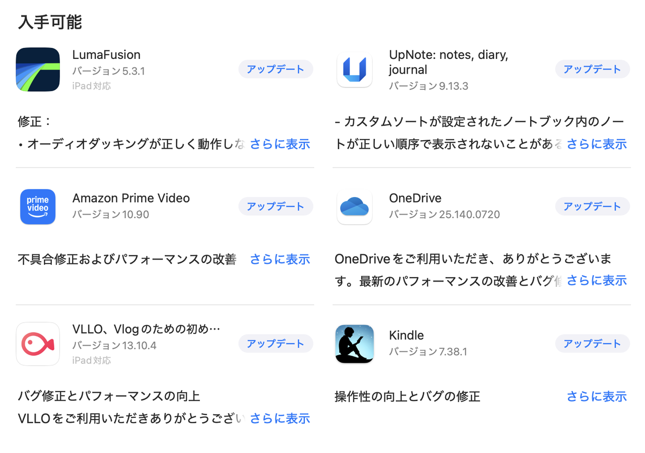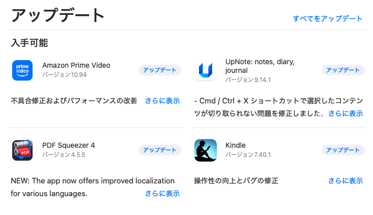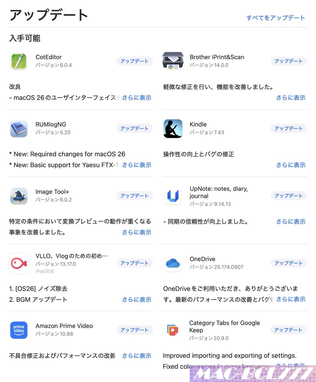 2025年10月17日 アプリのアップデート! こんにちは!Mac-BCL777です。 今日久しぶりにシステムメニューを開くと10個のアプリのアップデート通知が来ていました。いつも使っているアプリの「Upnote」「RUMlogNG」のアップデートがありましたので、早速アップデートしました。バグ修正みたいですね。とりあえずアップデートしておきます。