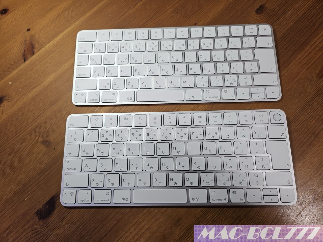 新旧のキーボードを並べてみました。Touch ID付きのキーボードは、微妙に厚くなっていました。