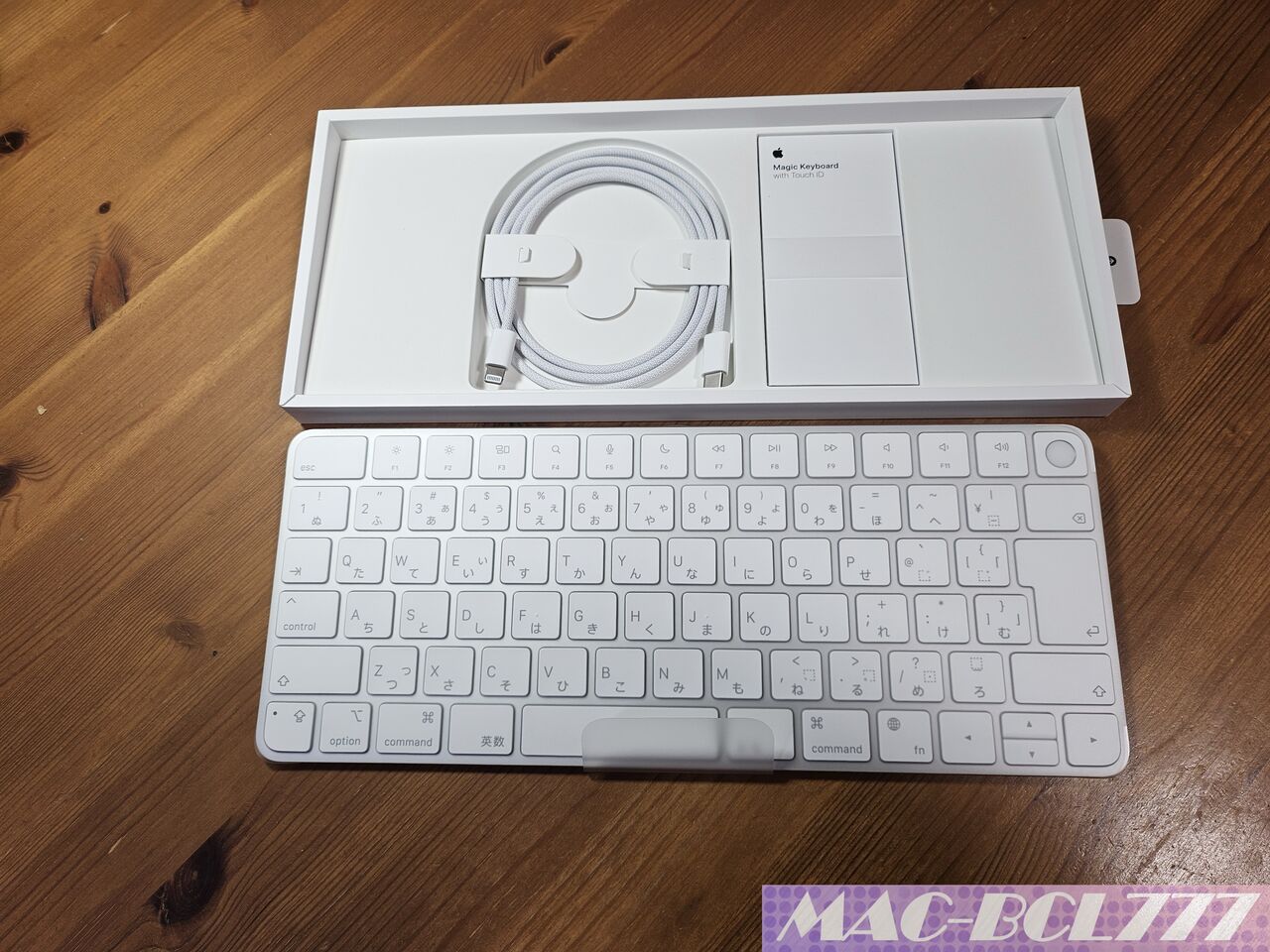 不具合のあったMagic KeyboardからTouch ID付きのMagic Keyboardに買い替え、昨日届きました。前回はケッチってTouch ID無しのキーボードにしましたが、やっぱりTouch IDがあるのとないのでは、便利さが違いました。手元で指で認証できるのは便利ですね。数千円ケチるとダメだと言うことが、よくわかりました。