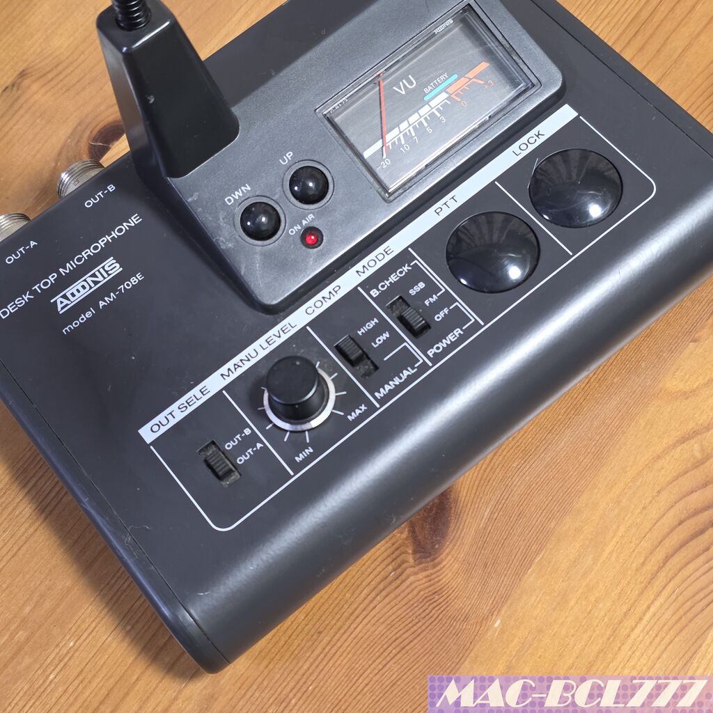 アドニス製の欲しかった製造中止になっているコンプレッサーマイクを、メルカリでお安く5000円でゲットしました。完動品です。このコンプレッサーマイク、2台の無線機に接続、切り替えができて、SSB、FM毎にコンプレッサーのレベルが調整できます。しかしなんと言っても、メーター好きに私には、VUメータがついているのが嬉しいです(笑)。あと、無線機からちゃんと電源が供給されますし、UP/DOWNボタンもちゃんと機能して、メーカー純正のマイクと同等の動作をしてくれます。買えないと思っていたマイクがメルカリで買えるとは、思ってもみませんでした。